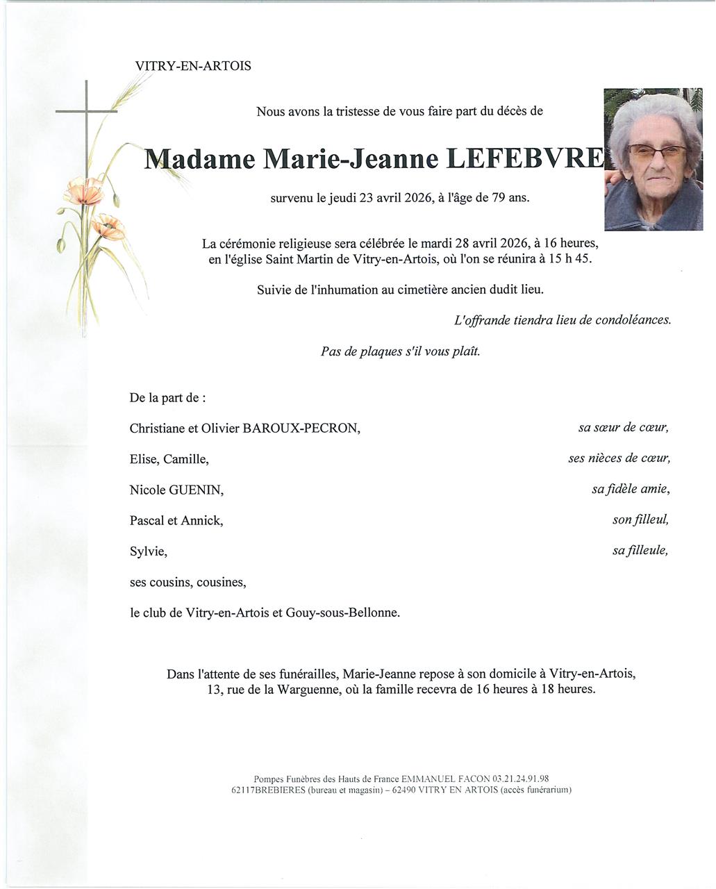 cimetière de Vitry en Artois le mardi 28 avril à 17 heures
