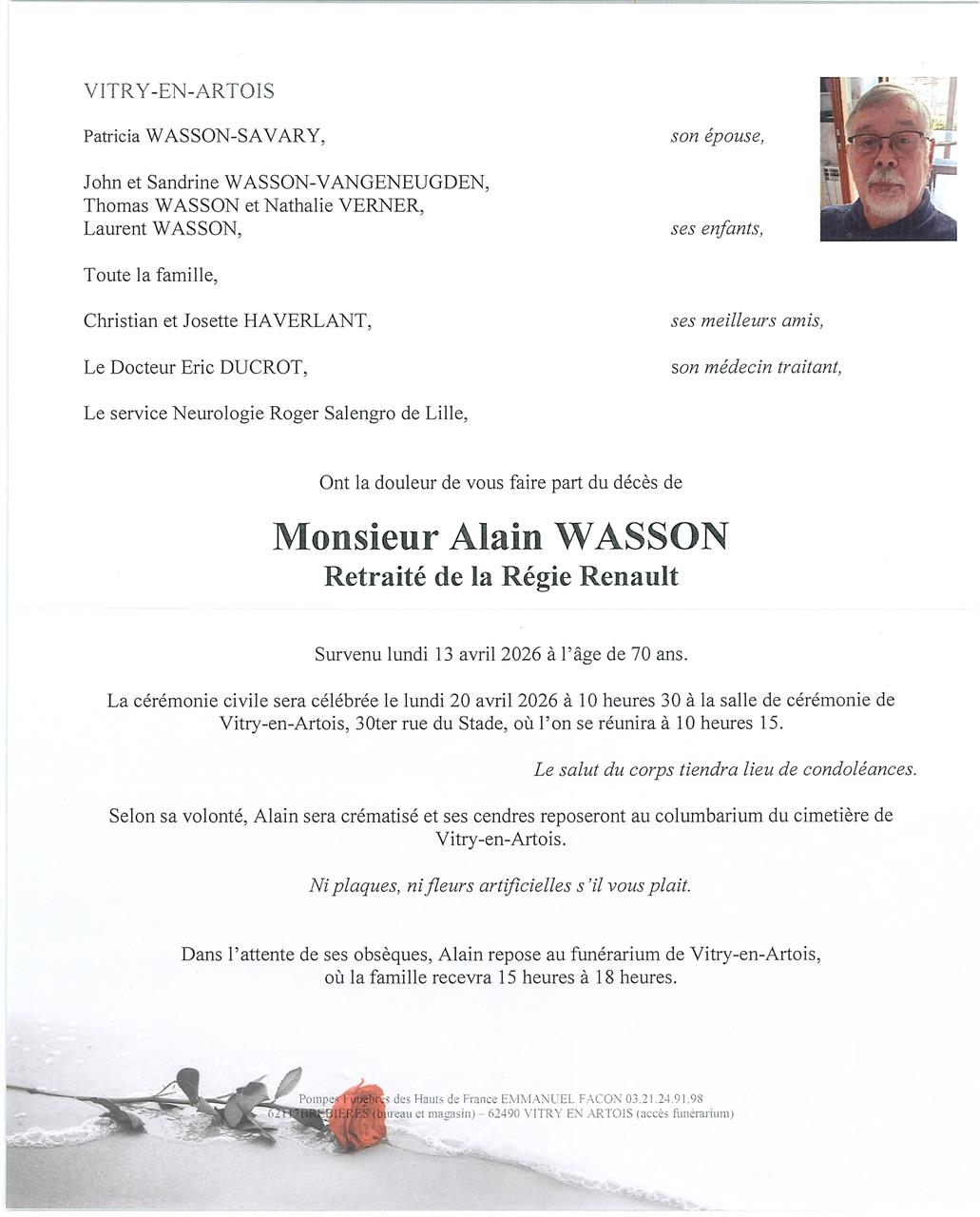 Funérarium Emmanuel Facon (Vitry) de Vitry-en-Artois le lundi 20 avril à 10 heures 30