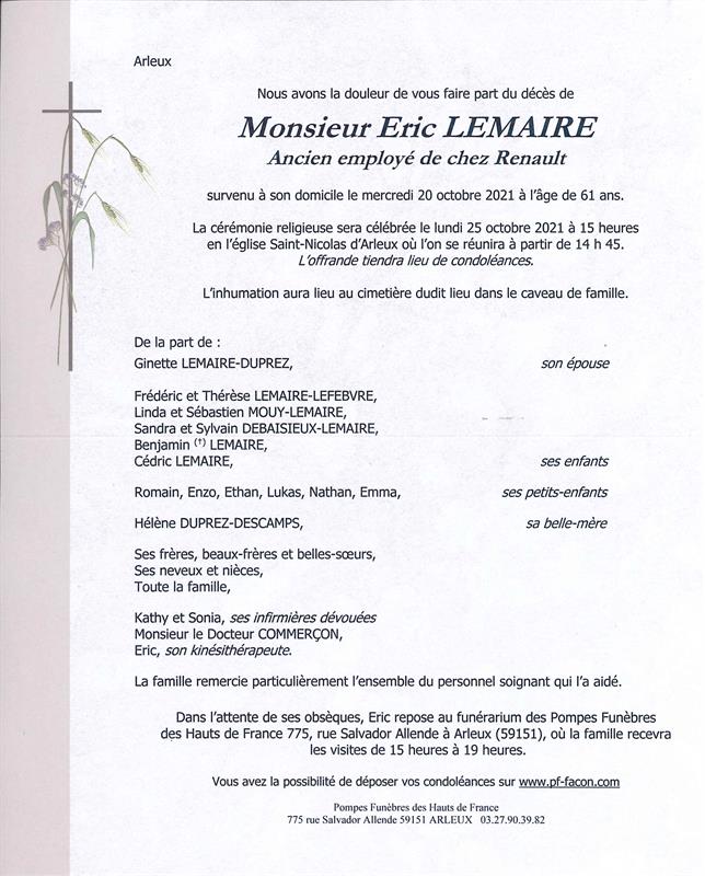 Monsieur Eric LEMAIRE