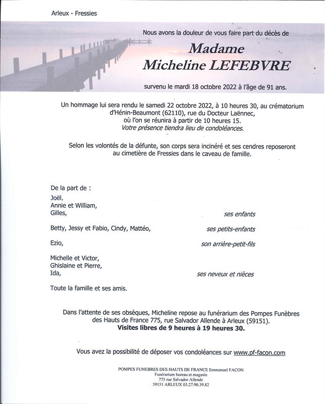 Décédée à Dechy (59187, France) le mardi 18 octobre 2022 à l'âge de 91 ans