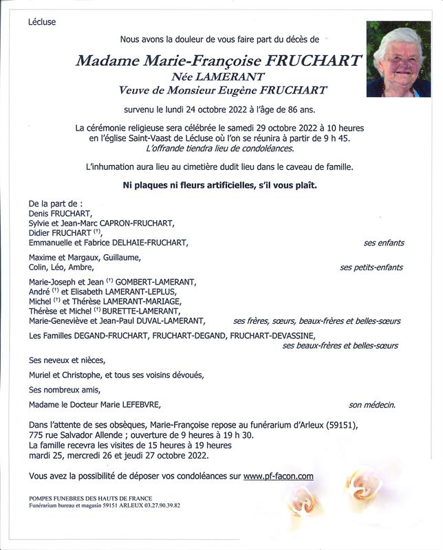 Madame Marie-Françoise FRUCHART née LAMERANT