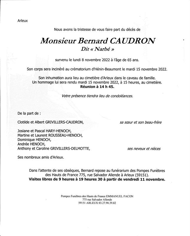 Décédé à Arleux (59151, France) le mardi 8 novembre 2022 à l'âge de 65 ans
