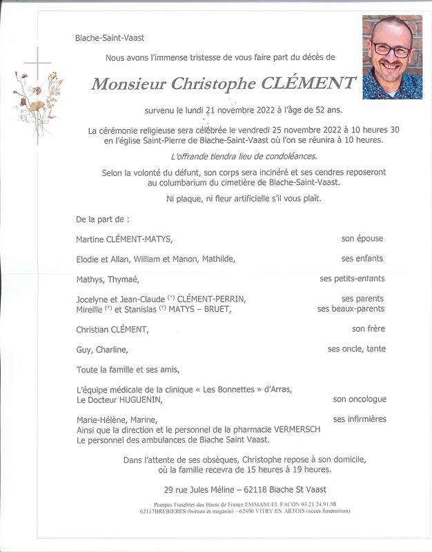 Décédé à Arras (62000, France) le lundi 21 novembre 2022 à l'âge de 52 ans