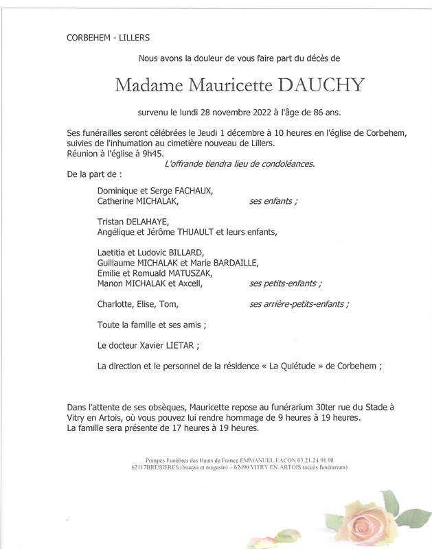Décédée à Corbehem (62112, France) le lundi 28 novembre 2022 à l'âge de 86 ans