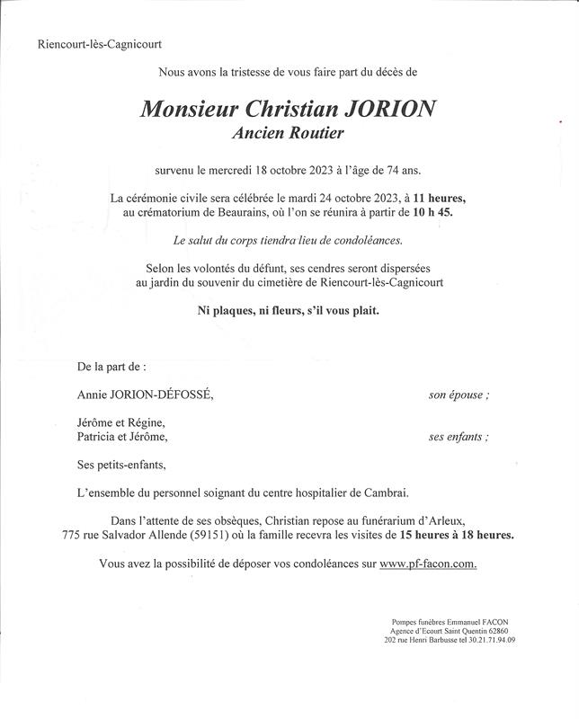 Décédé à Cambrai (59400, France) le mercredi 18 octobre 2023 à l'âge de 74 ans