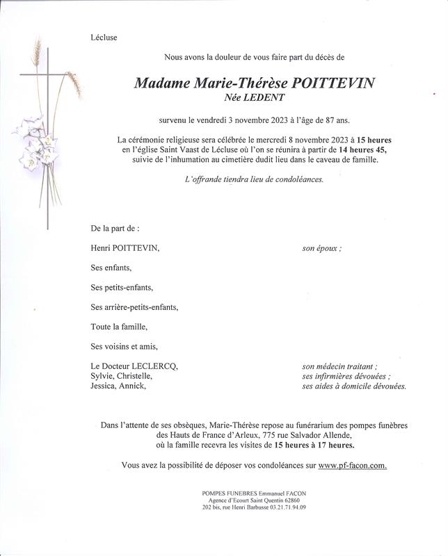 Madame Marie-Thérèse POITTEVIN née LEDENT