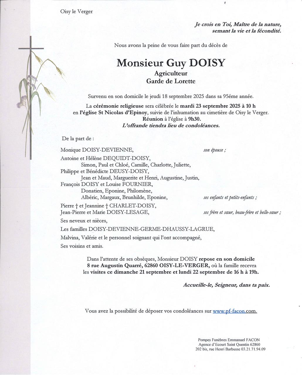 Décédé à Oisy-le-Verger (62860, France) le jeudi 18 septembre 2025 à l'âge de 94 ans