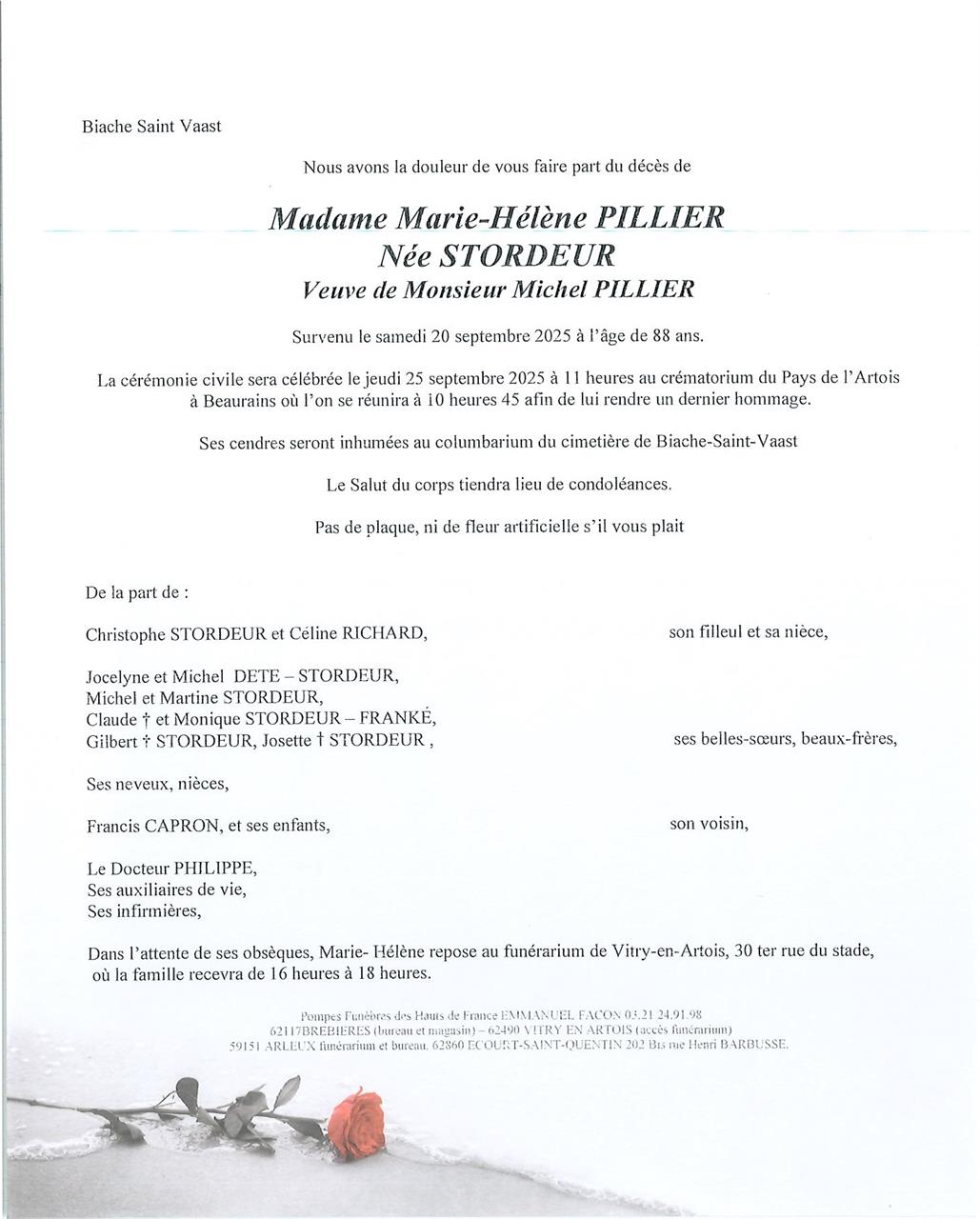 Madame Marie-Hélène PILLIER née STORDEUR