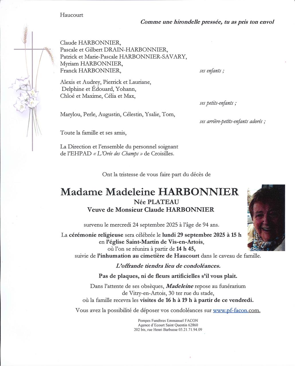 Veuve de Monsieur Claude Henri Marie HARBONNIER