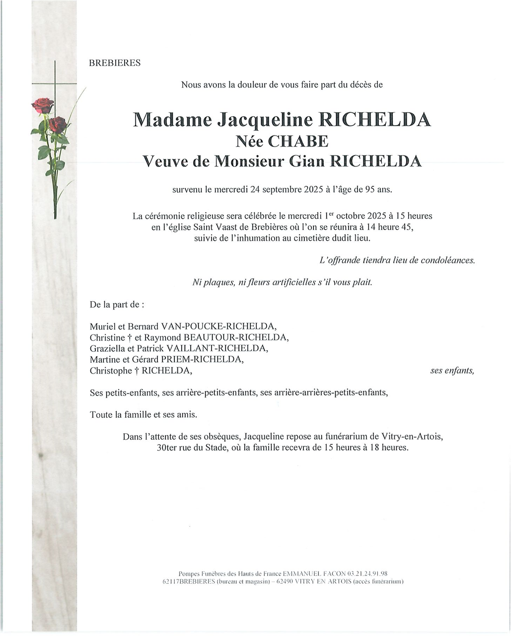 Veuve de Monsieur Gian, Franco, Emilio RICHELDA