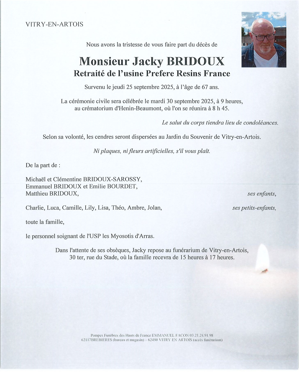 Décédé à Arras (62000, France) le jeudi 25 septembre 2025 à l'âge de 67 ans