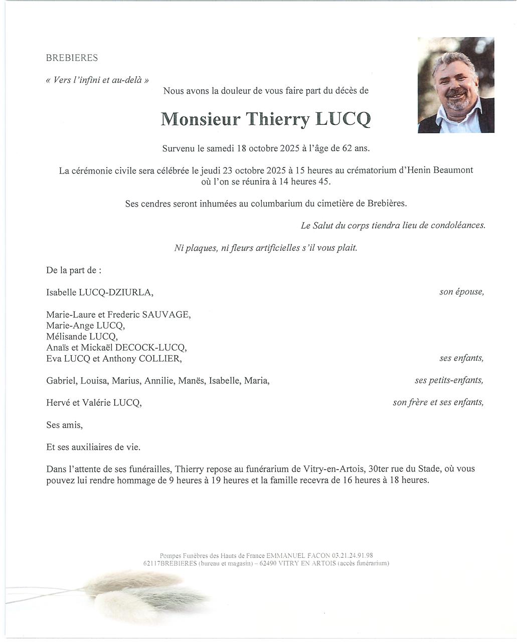 Décédé à Beauvoir-Wavans (62390, France) le samedi 18 octobre 2025 à l'âge de 62 ans