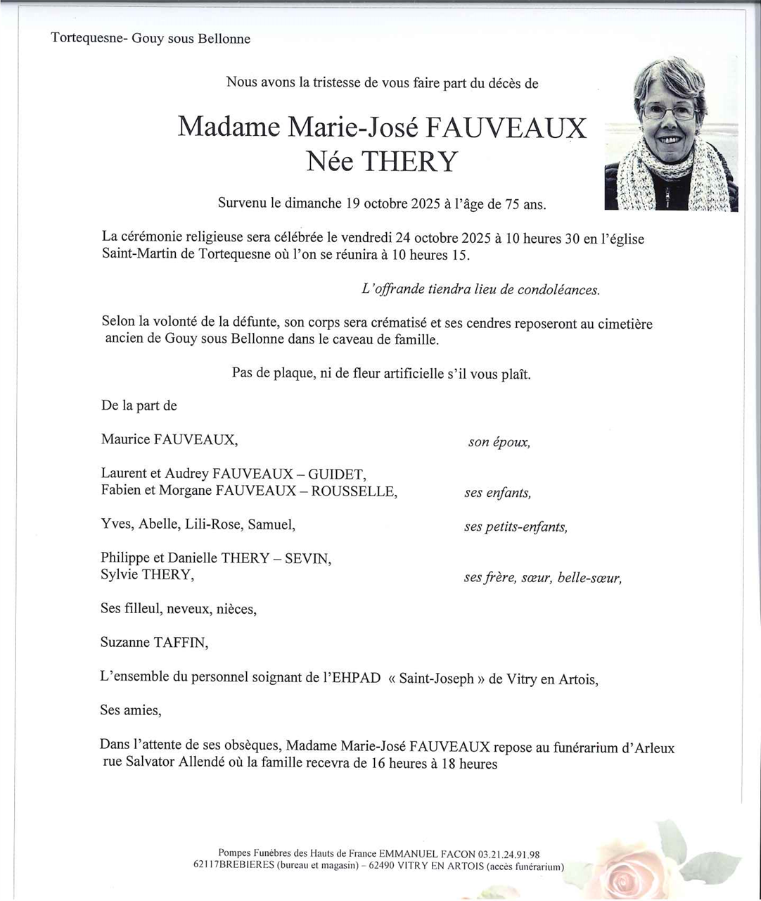 Madame Marie-José FAUVEAUX née THERY