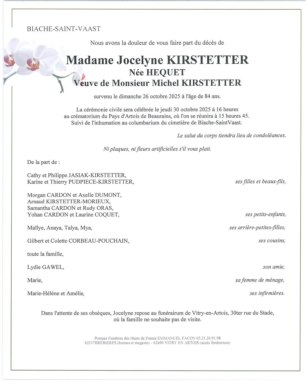 Madame Jocelyne KIRSTETTER née HEQUET