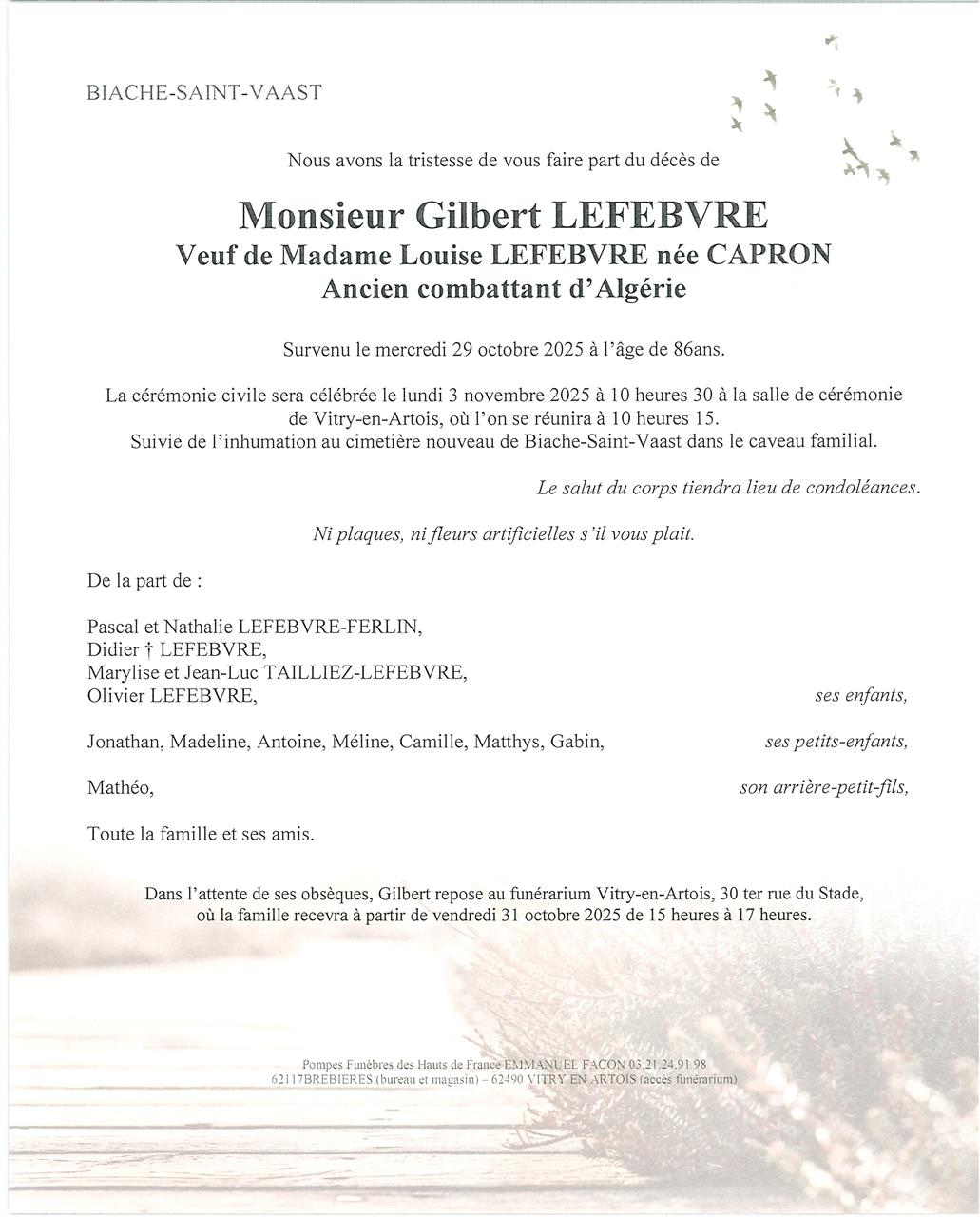 Décédé à Bois-Bernard (62320, France) le mercredi 29 octobre 2025 à l'âge de 86 ans