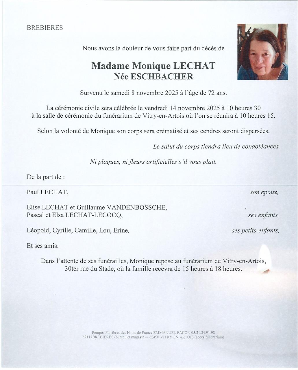 Epouse de Monsieur Paul, Albert, Roger LECHAT