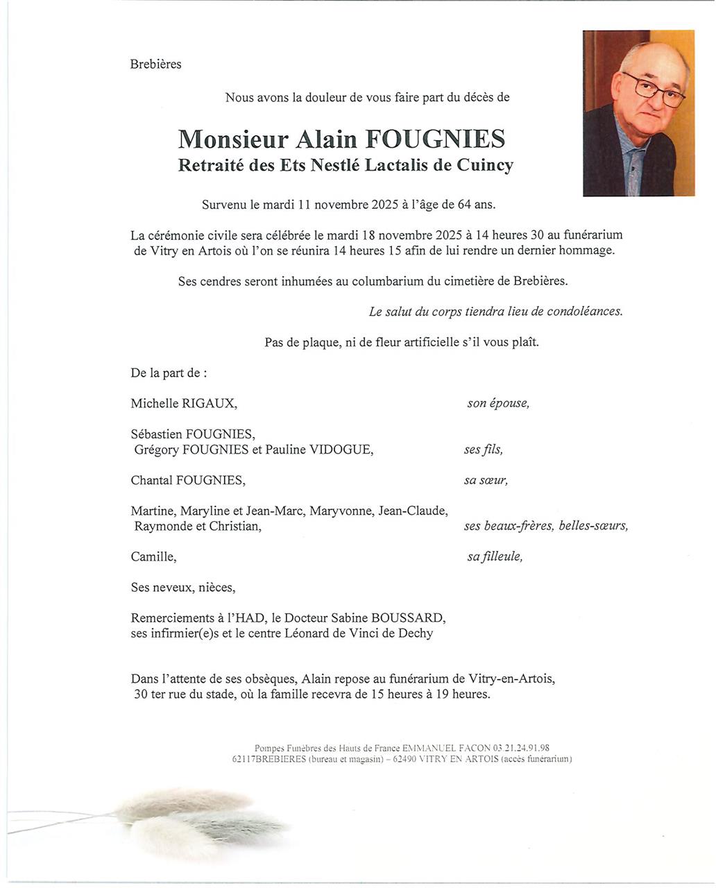 Décédé à Brebières (62117, France) le mardi 11 novembre 2025 à l'âge de 64 ans