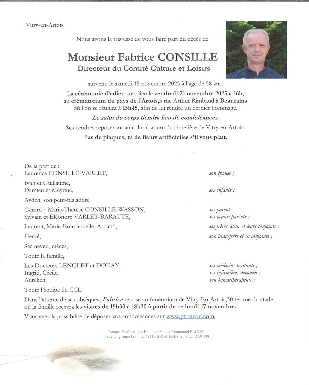 Décédé à Vitry-en-Artois (62490, France) le samedi 15 novembre 2025 à l'âge de 58 ans