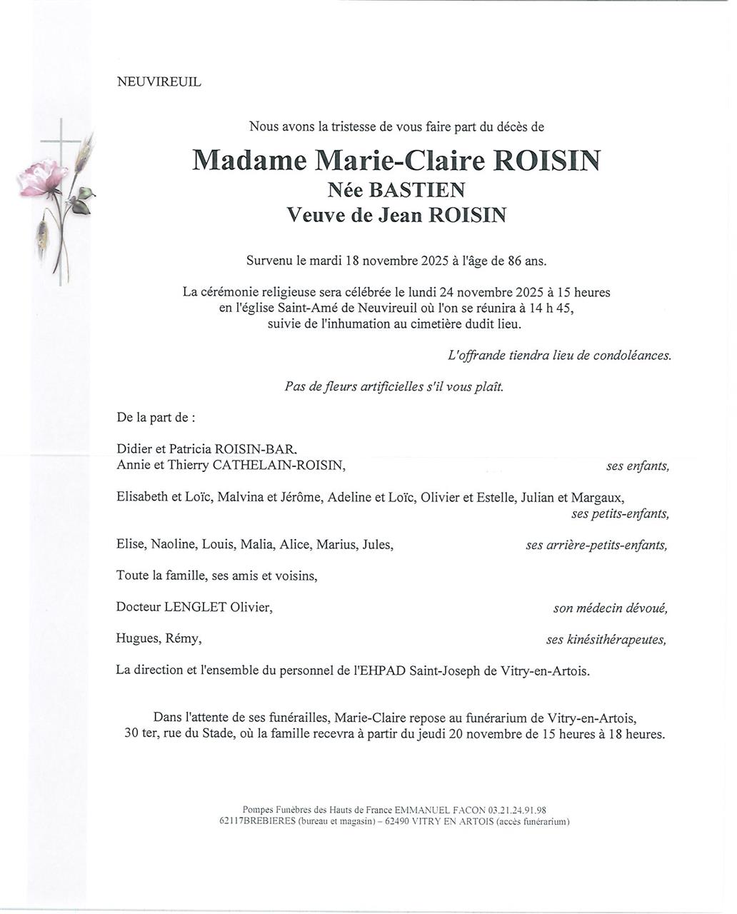 Décédée à Vitry-en-Artois (62490, France) le mardi 18 novembre 2025 à l'âge de 86 ans
