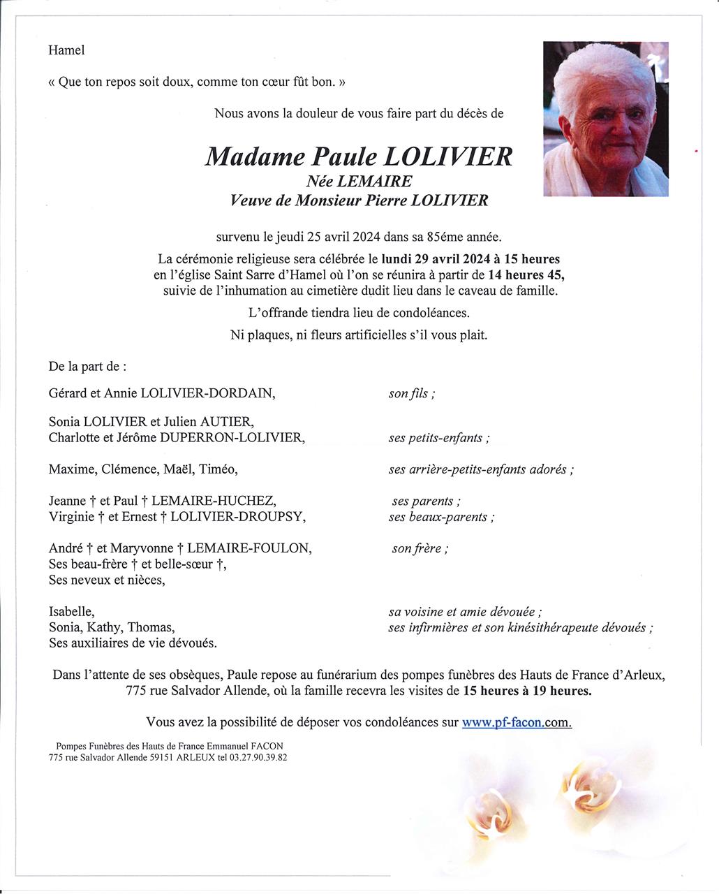 Madame Paule LOLIVIER née LEMAIRE