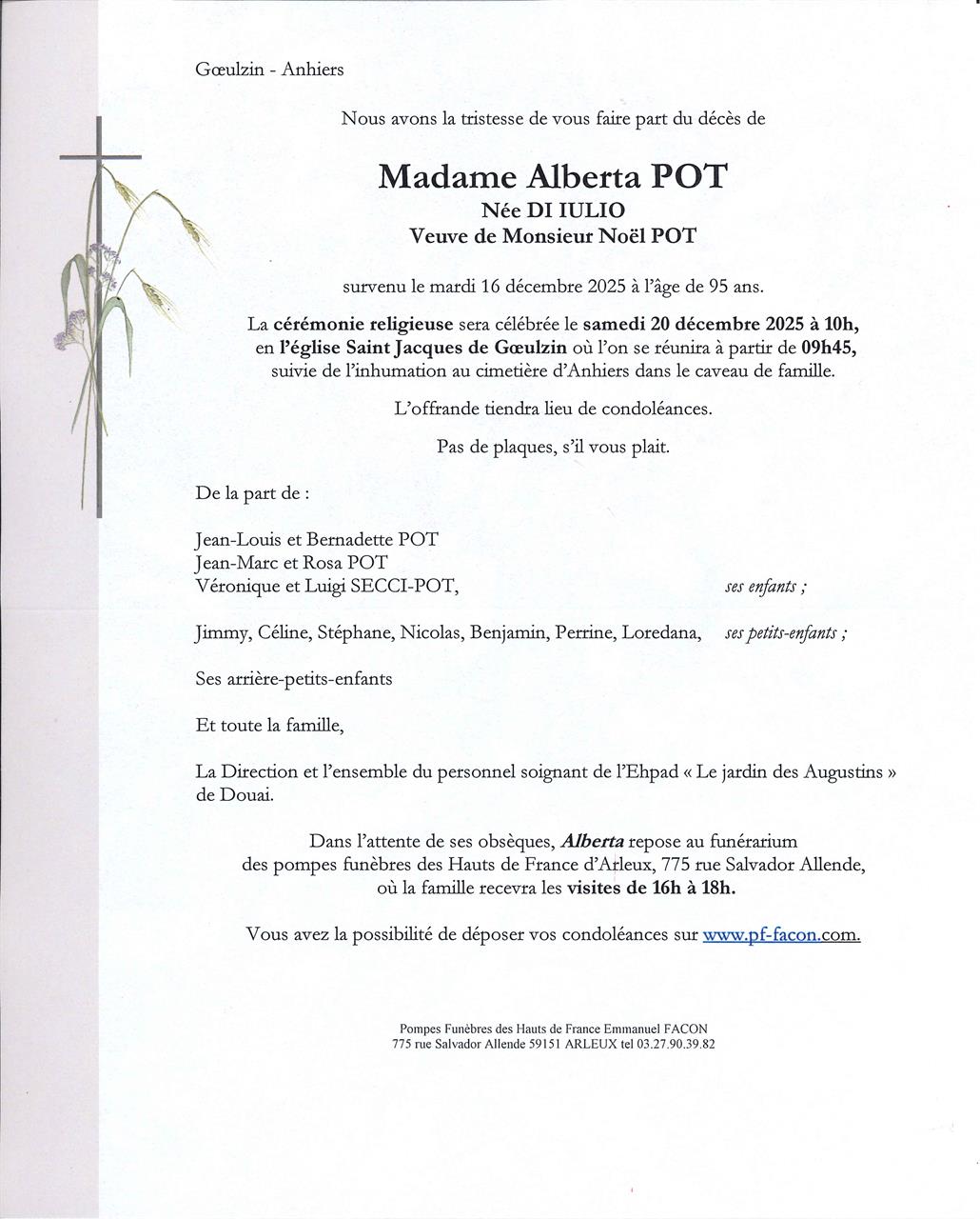 Madame Alberta POT née DI IULIO