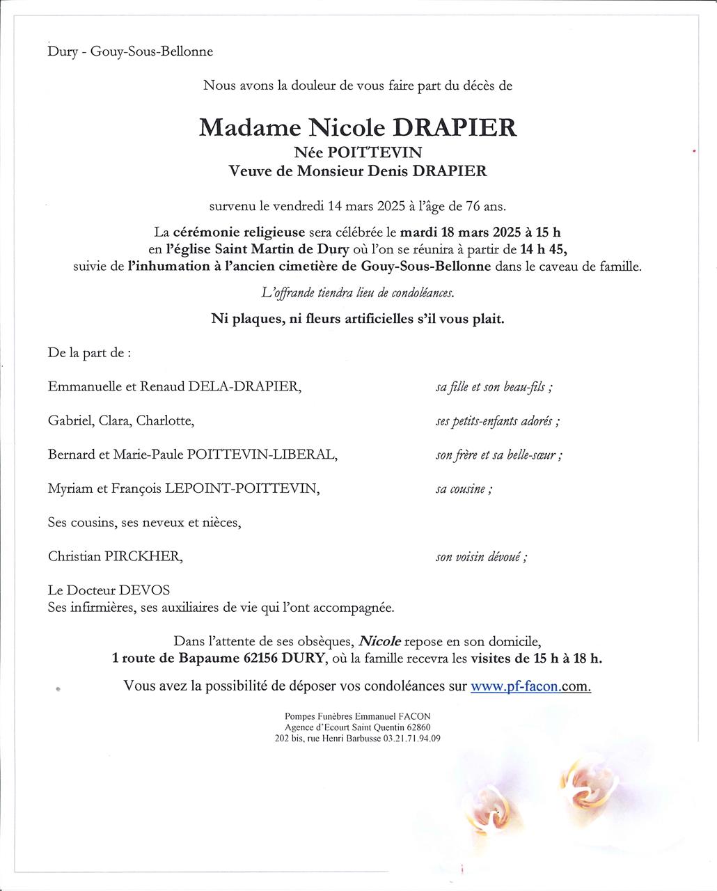 Madame Nicole DRAPIER née POITTEVIN