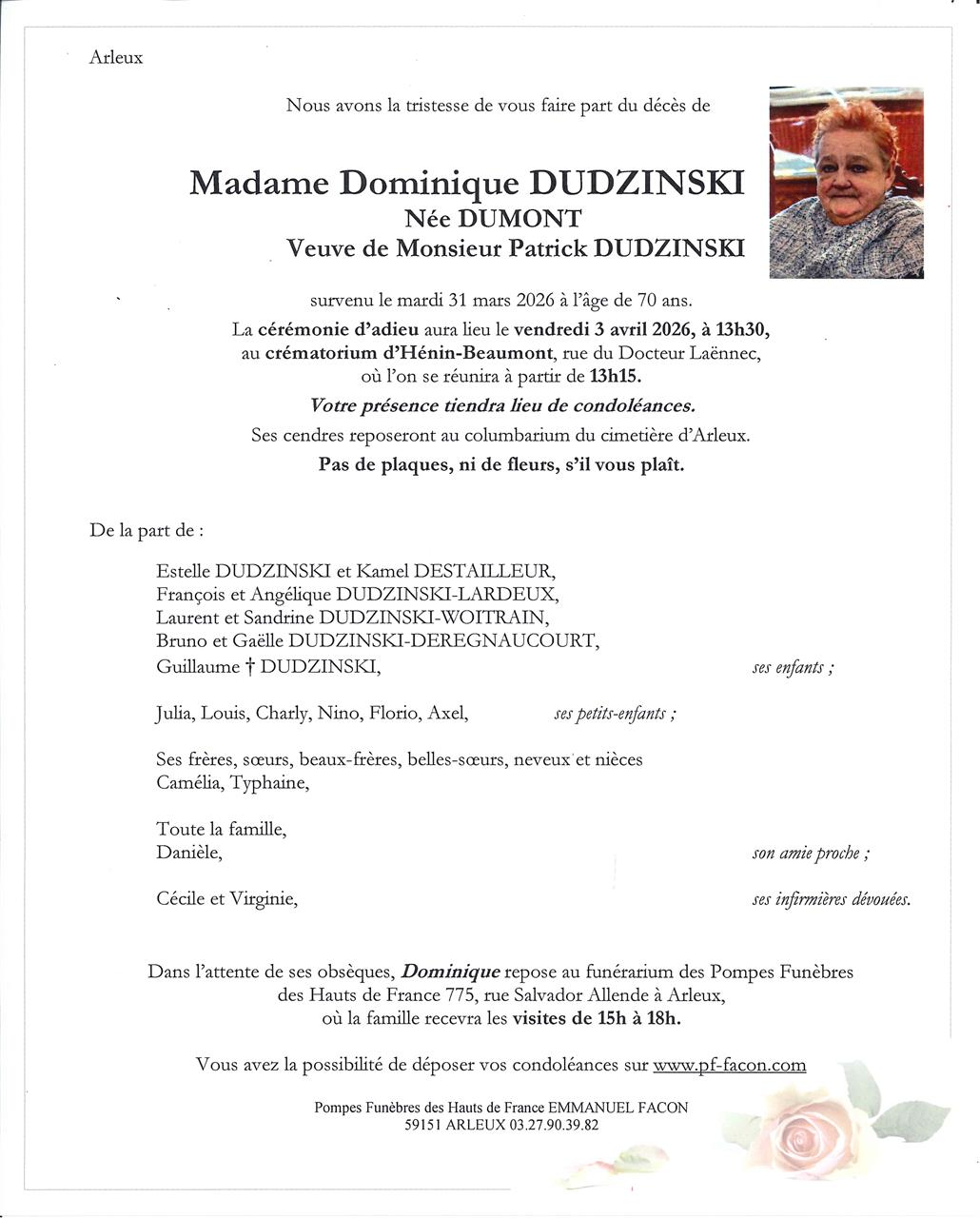 Madame Dominique DUDZINSKI née DUMONT