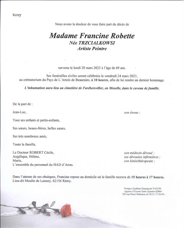 Madame Francine ROBETTE née TRZCIALKOWSKI