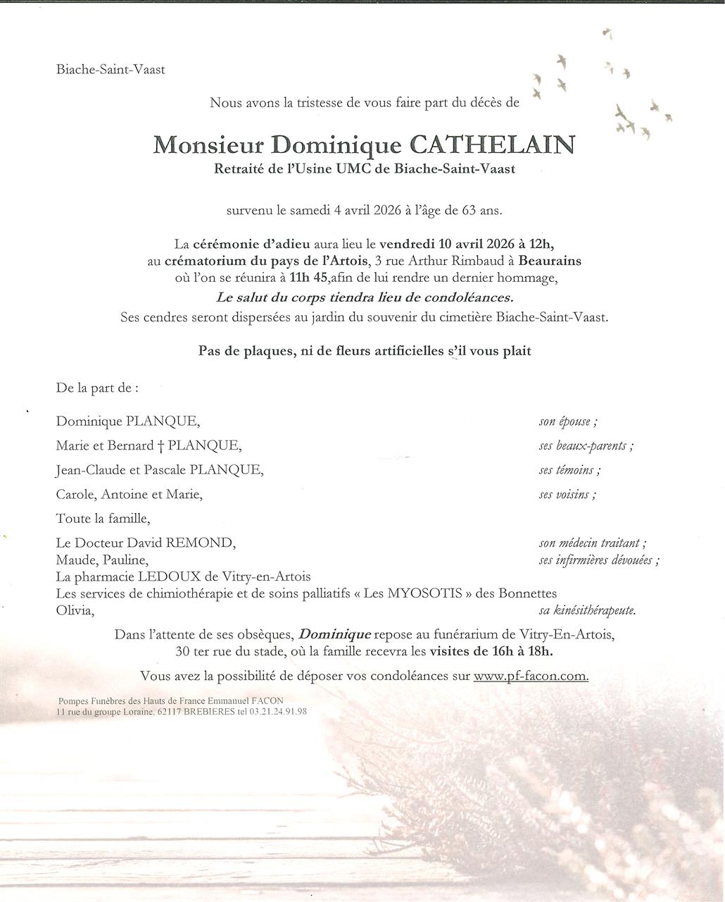 Décédé à Arras (62000, France) le samedi 4 avril 2026 à l'âge de 63 ans