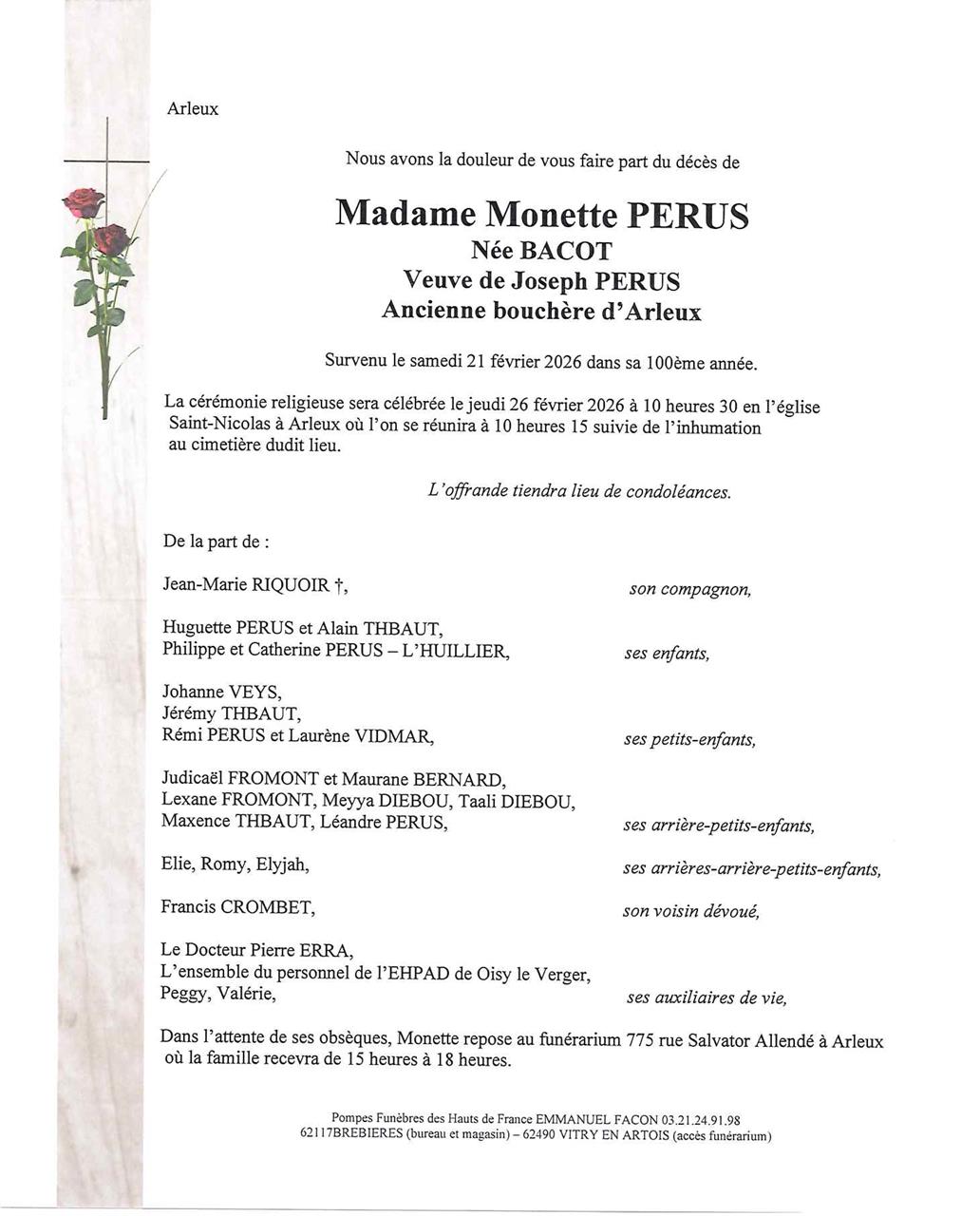 Madame Monette PERUS née BACOT