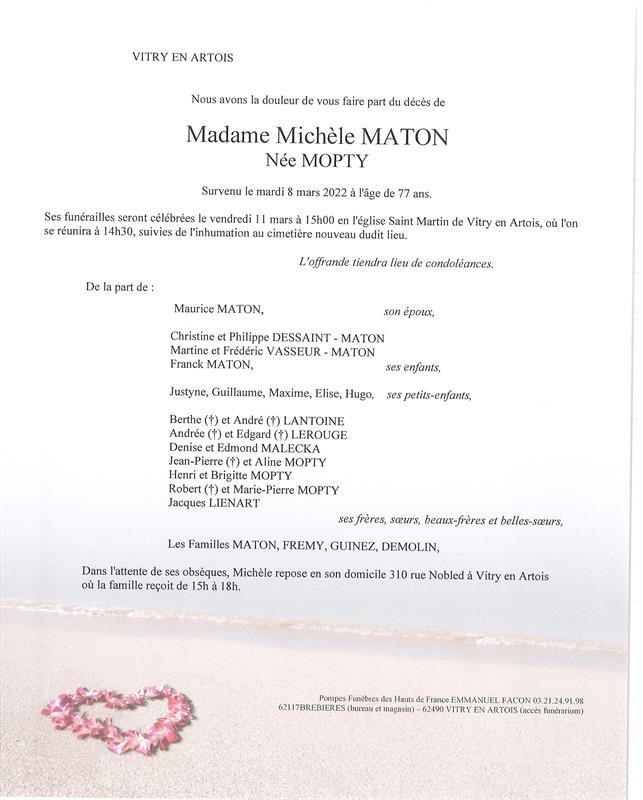 Madame MICHELE MATON née MOPTY
