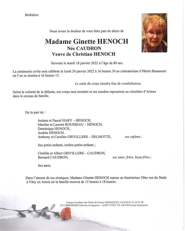 Madame Ginette HENOCH née CAUDRON