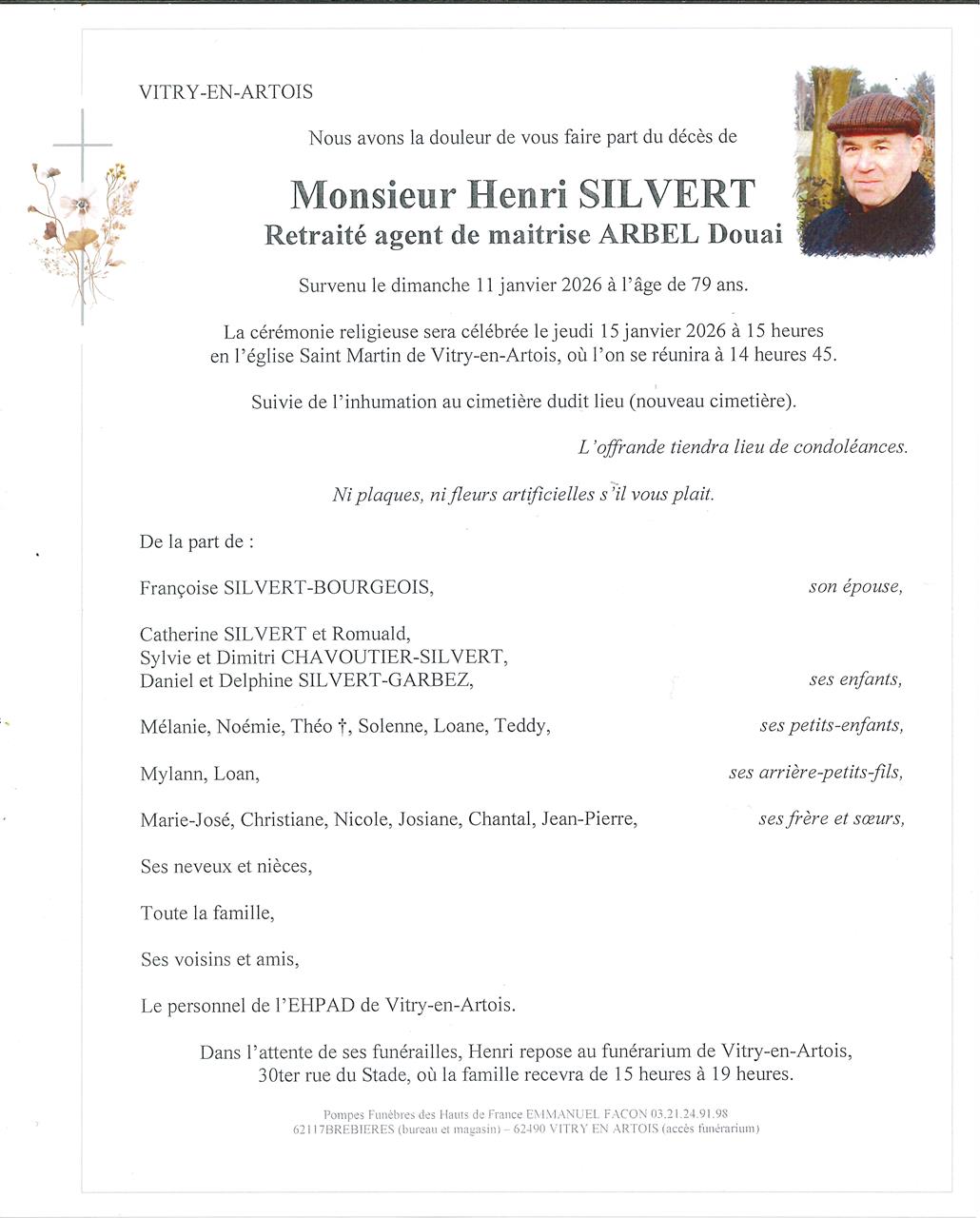 Décédé à Vitry-en-Artois (62490, France) le dimanche 11 janvier 2026 à l'âge de 79 ans