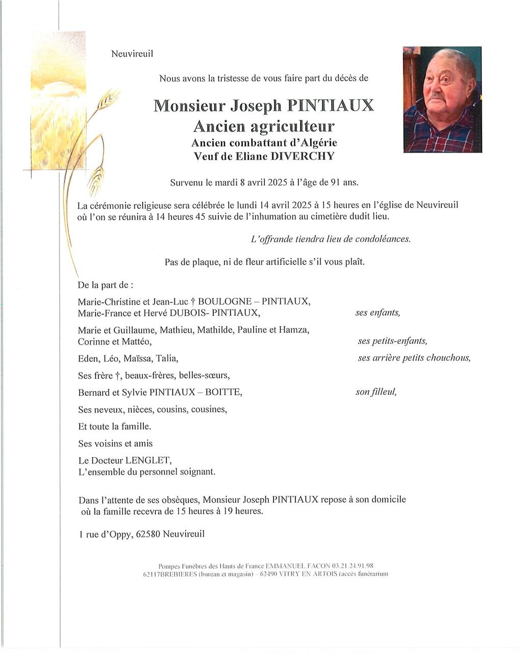 Décédé à Neuvireuil (62580, France) le mardi 8 avril 2025 à l'âge de 91 ans