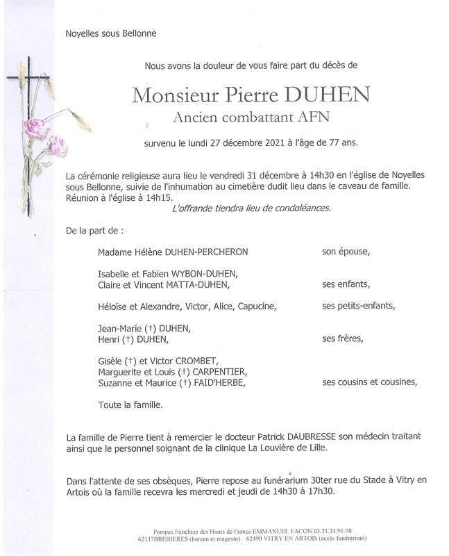 Monsieur PIERRE DUHEN