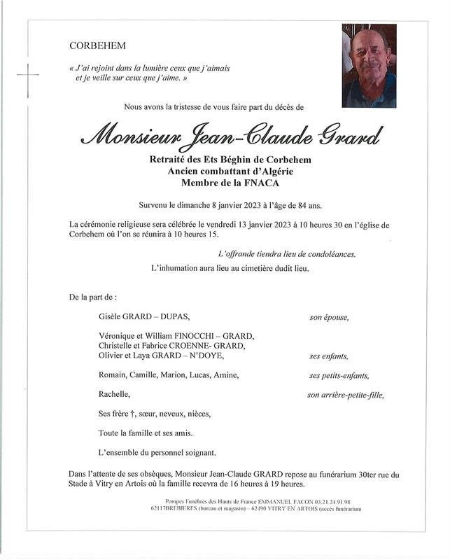 Décédé à Dechy (59187, France) le dimanche 8 janvier 2023 à l'âge de 84 ans