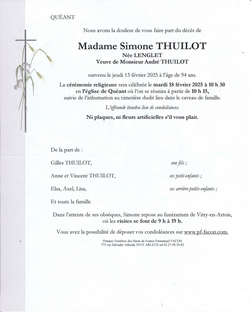 Madame Simone THUILOT née LENGLET