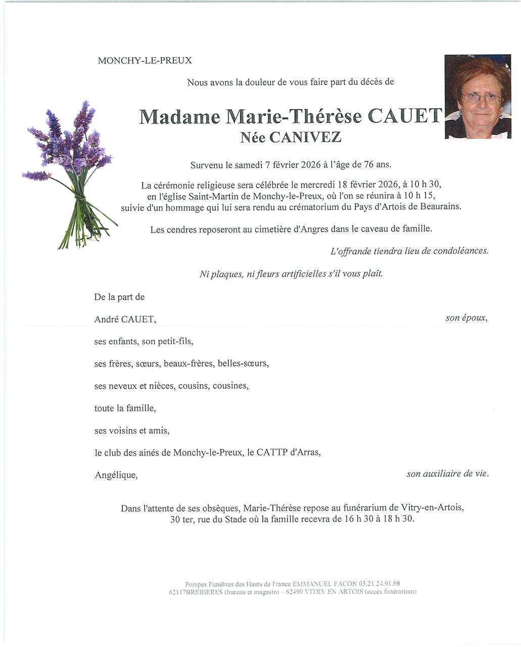 Madame Marie-Thérèse, Jeanne CAUET née CANIVEZ