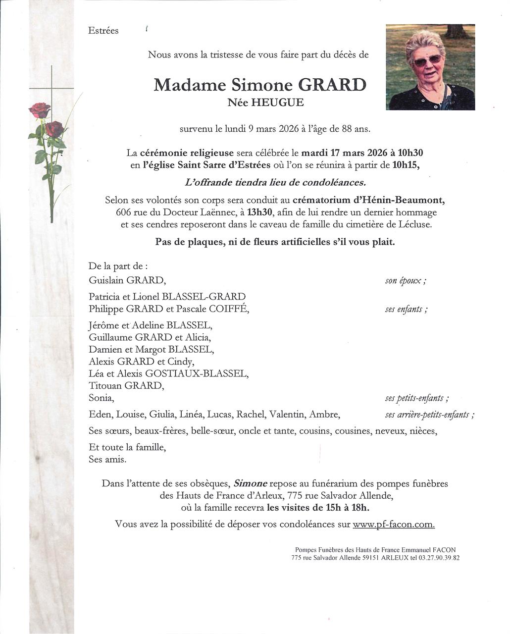 Décédée à Estrées (59151, France) le lundi 9 mars 2026 à l'âge de 88 ans