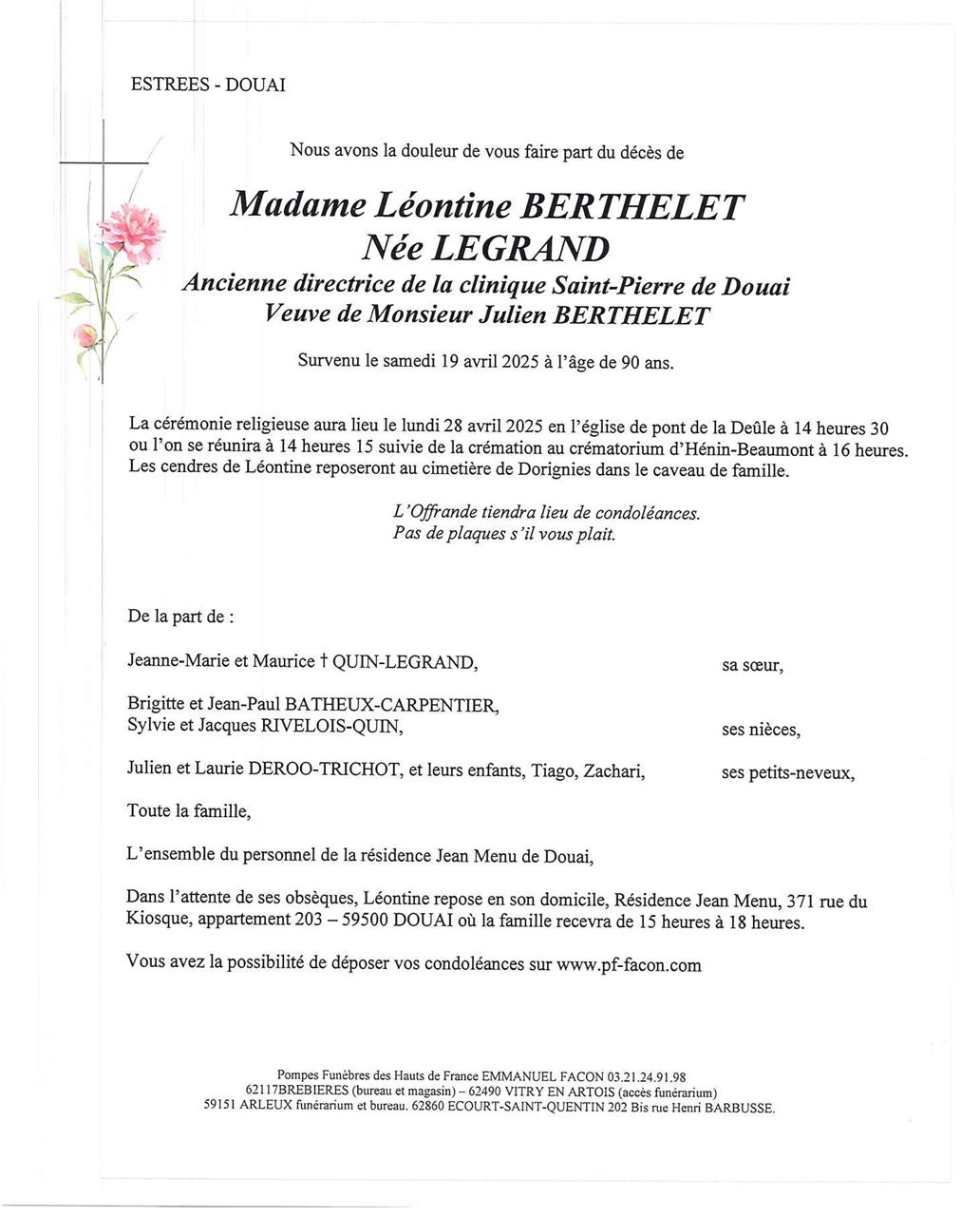 Veuve de Monsieur Julien Octave Aimable BERTHELET