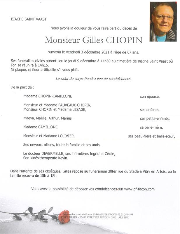 Décédé à Arras (62000, France) le vendredi 3 décembre 2021 à l'âge de 67 ans