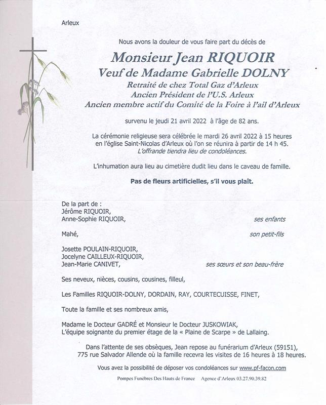 Monsieur Jean RIQUOIR