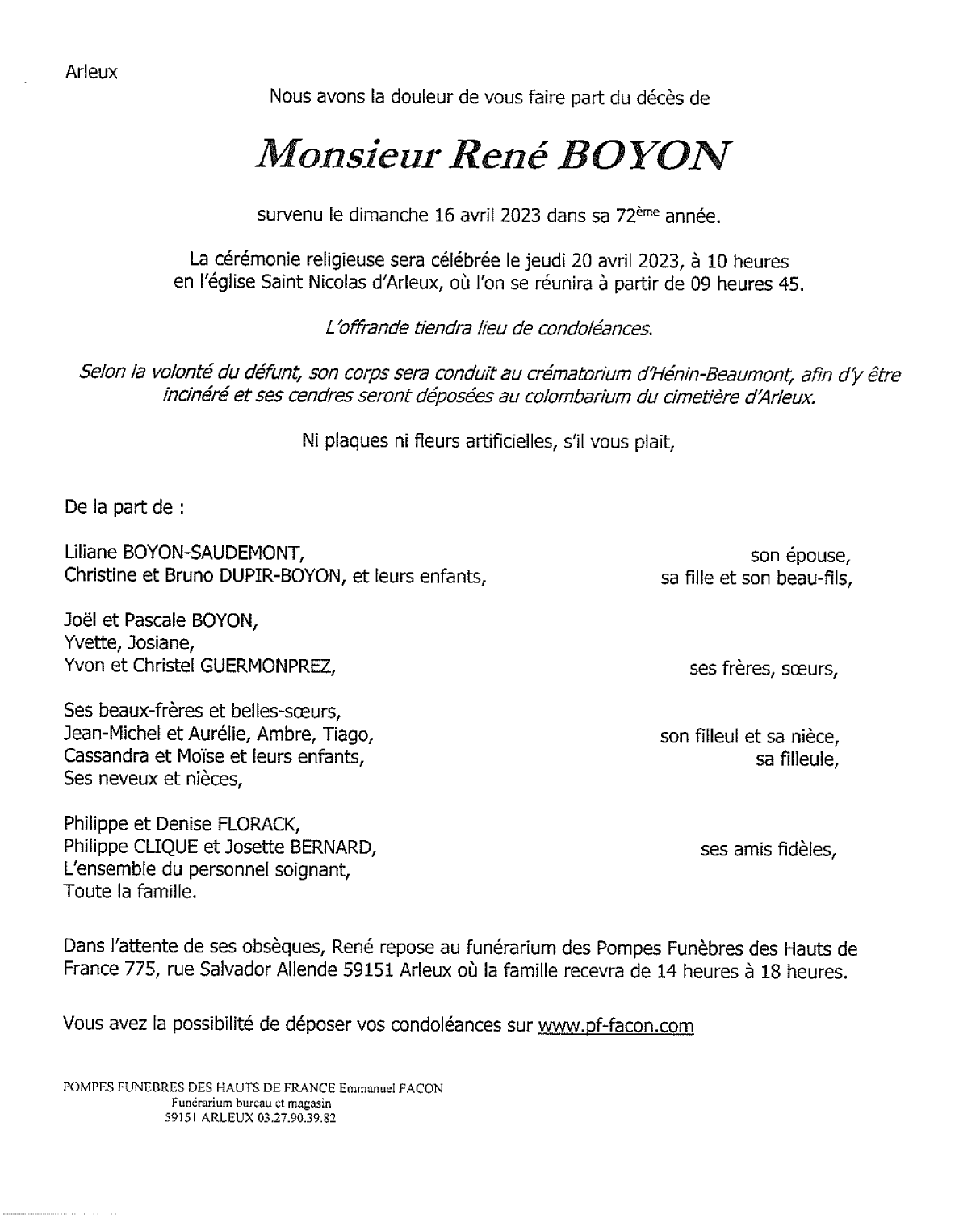 Décédé à Cambrai (59400, France) le dimanche 16 avril 2023 à l'âge de 71 ans
