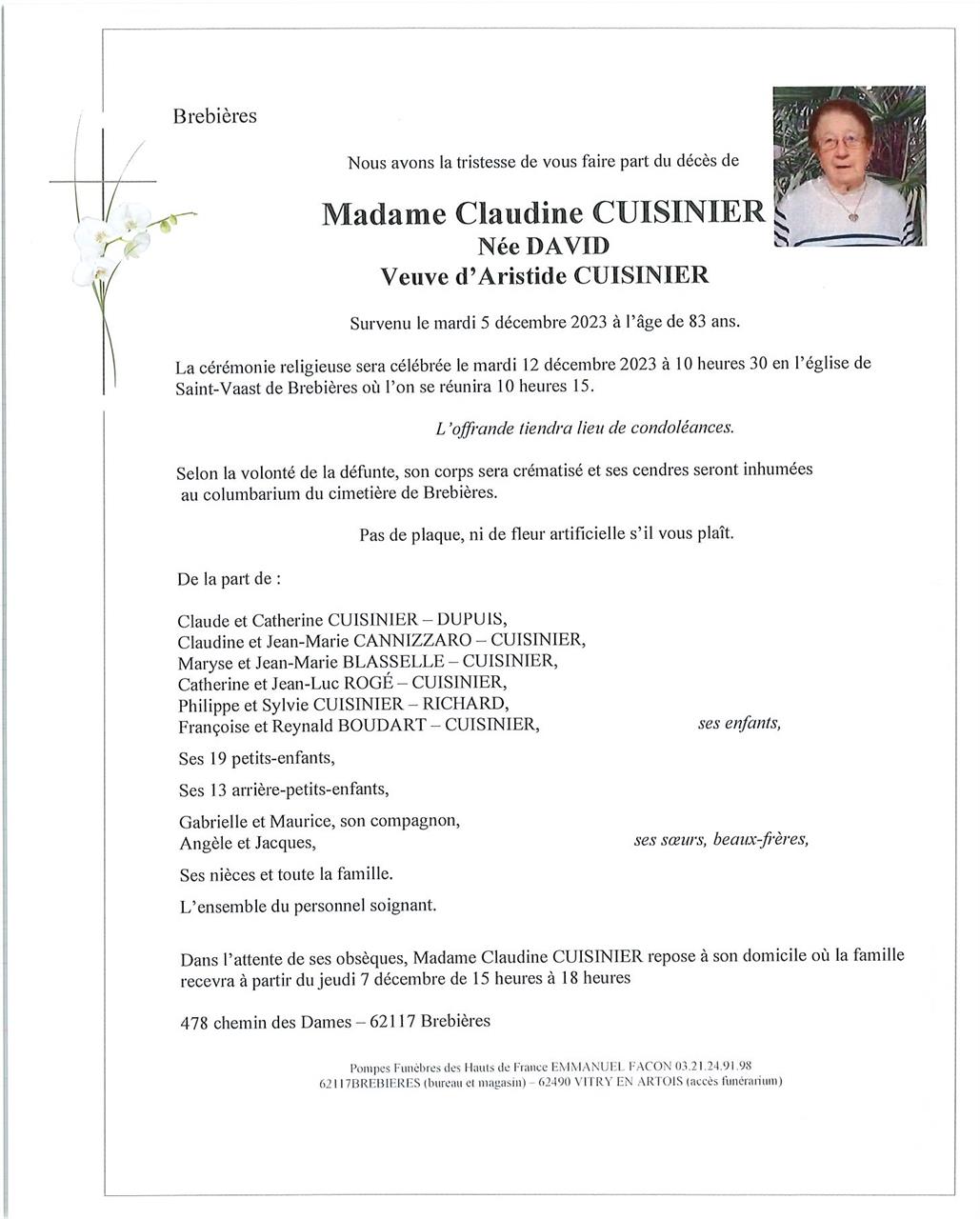 Décédée à Vitry-en-Artois (62490, France) le mardi 5 décembre 2023 à l'âge de 83 ans