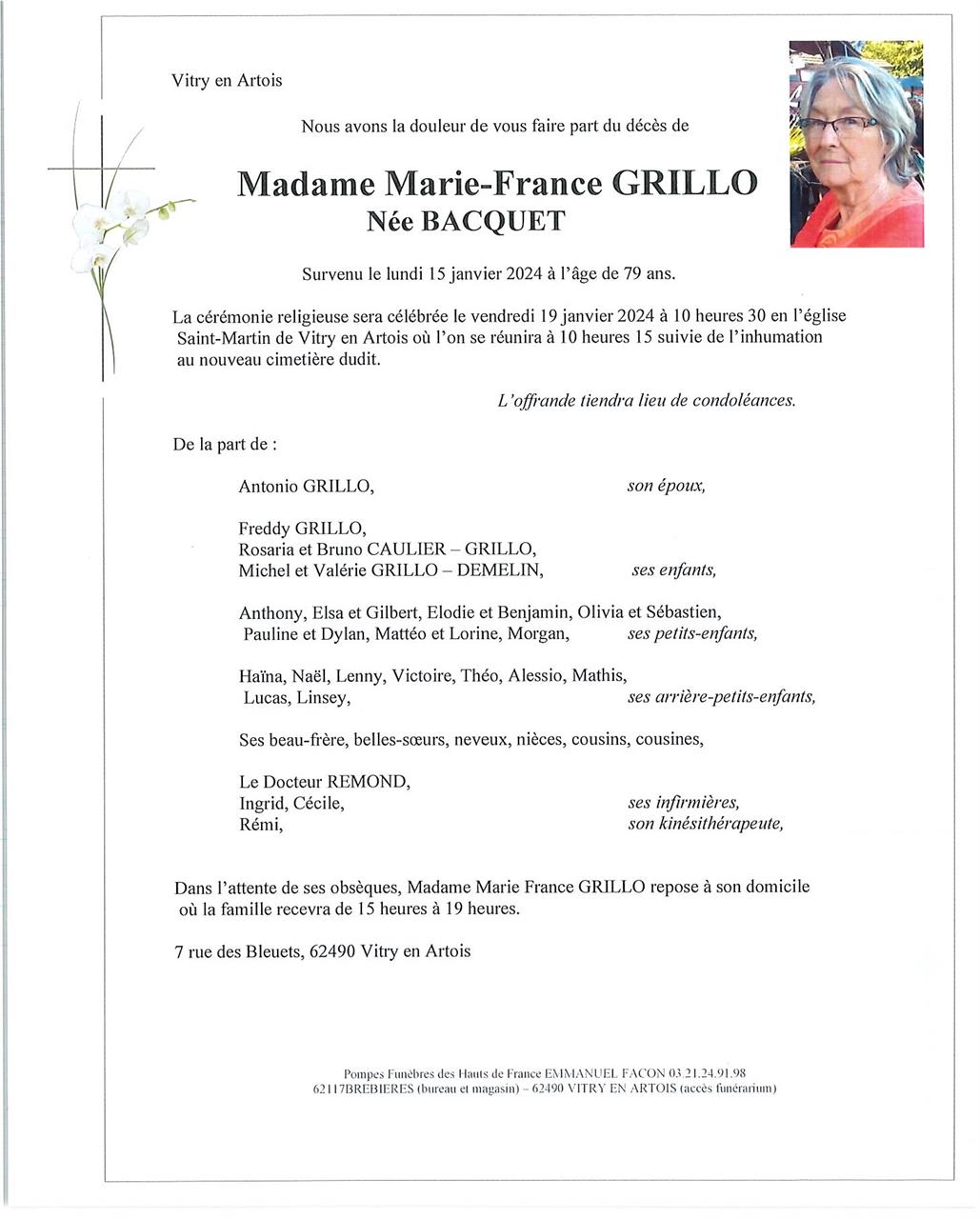 Madame Marie-France GRILLO née BACQUET