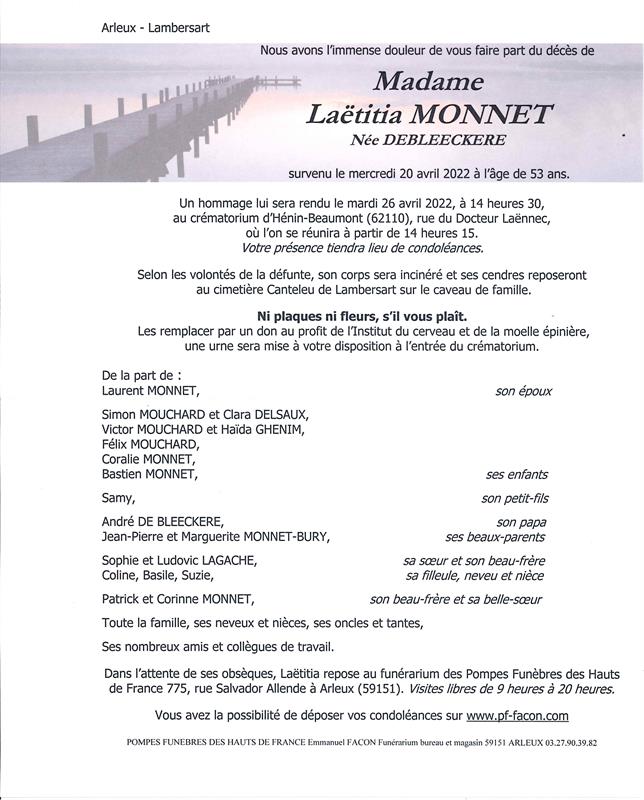 Décédée à Arleux (59151, France) le mercredi 20 avril 2022 à l'âge de 53 ans