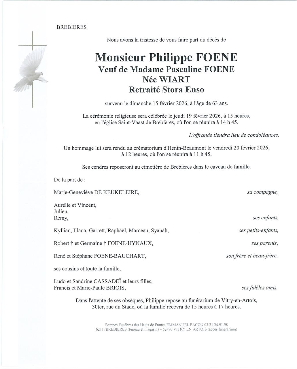 Décédé à Arras (62000, France) le dimanche 15 février 2026 à l'âge de 63 ans