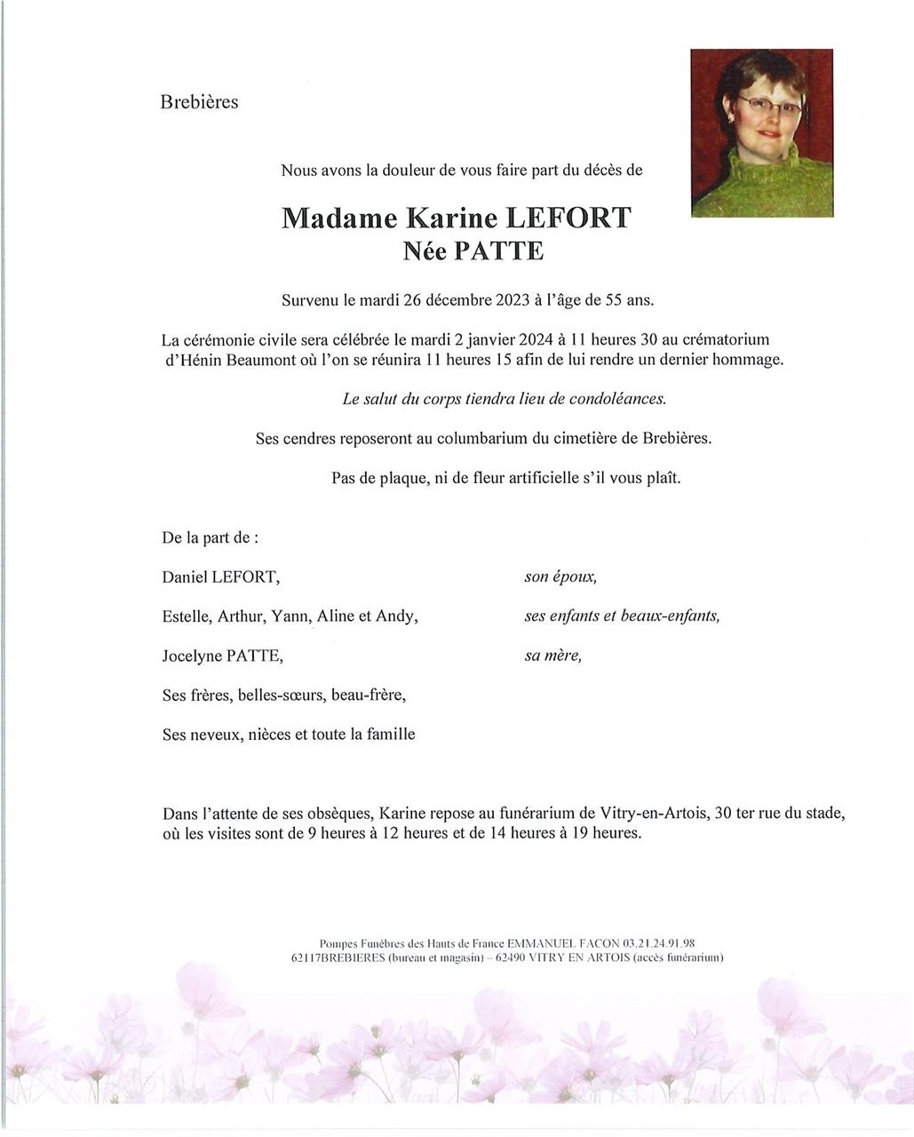 Décédée à Arras (62000, France) le mardi 26 décembre 2023 à l'âge de 55 ans