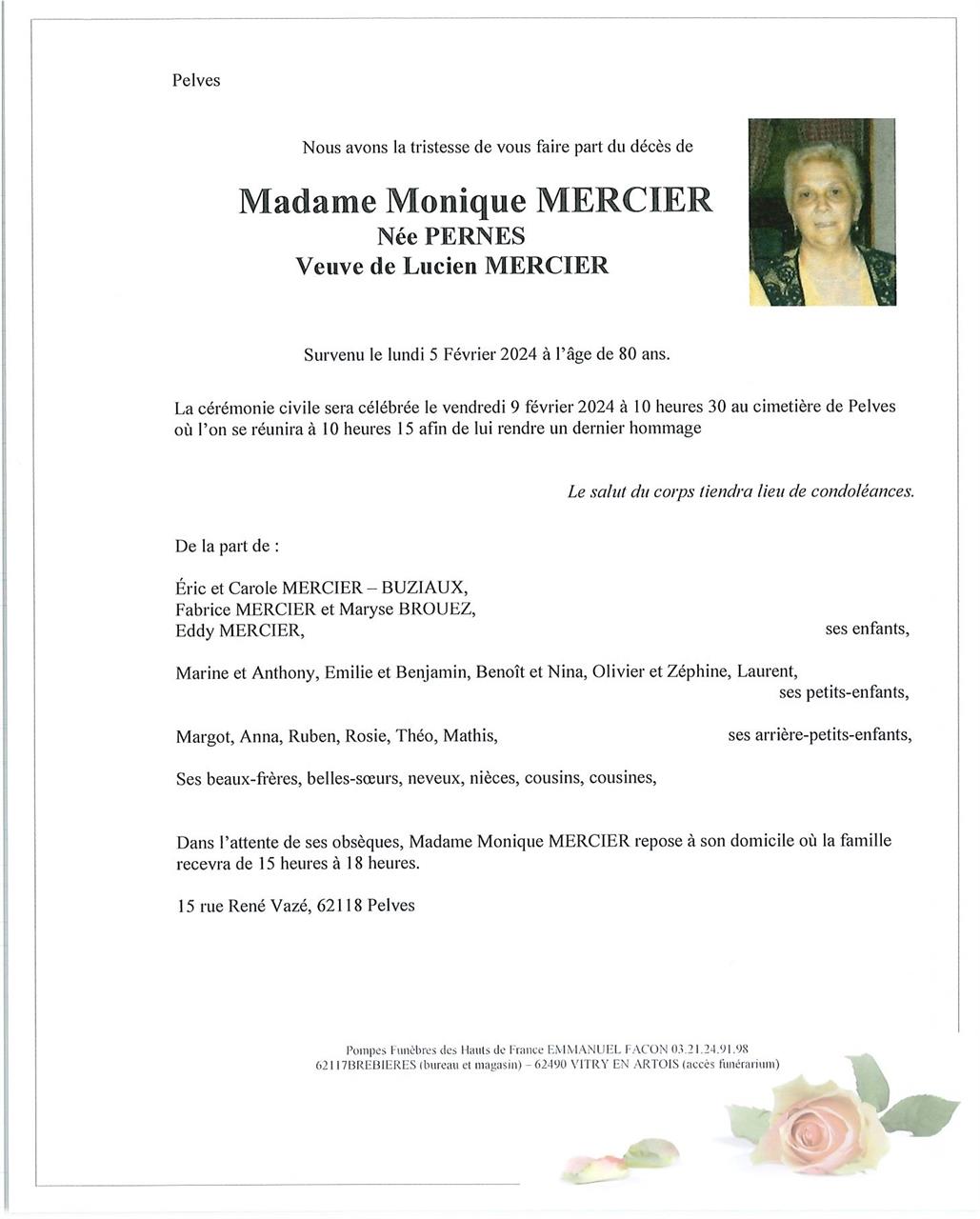 Madame Monique MERCIER née PERNES