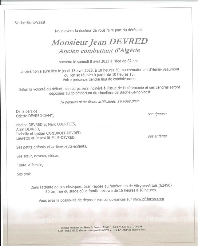 Décédé à Vitry-en-Artois (62490, France) le samedi 8 avril 2023 à l'âge de 87 ans